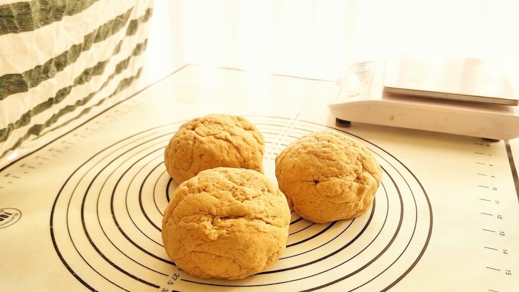 Divide into 3 pieces (about 330–335g each), cover, and rest for 10 minutes to relax the dough before shaping.
