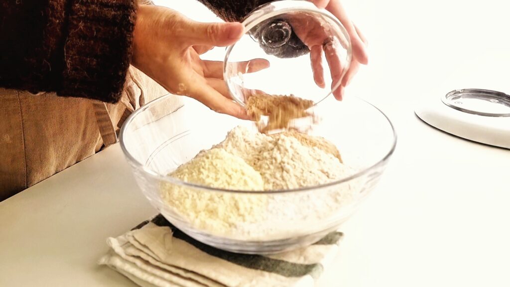 Prepare the yeast (choose your method): If using instant dry yeast, mix it directly into the dry blend. If using active dry yeast, bloom it: warm 50–100g of the recipe water to 40°C / 104°F, add yeast, and let stand 10 minutes until foamy.